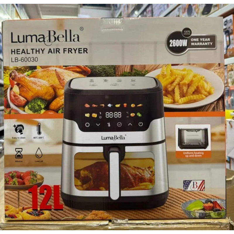 Аеро-фритюрниця 12 литров ,с двумя тенами. — готовьте вкусно и полезно для всей семьи! Технология циркуляции горячего воздуха позволяет жарить, запекать и готовить гриль практически без масла. Таймер и регулировка температуры обеспечивают точный контроль приготовления. Антипригарная корзина легко моется. Экономит время и сохраняет питательные вещества в пище.