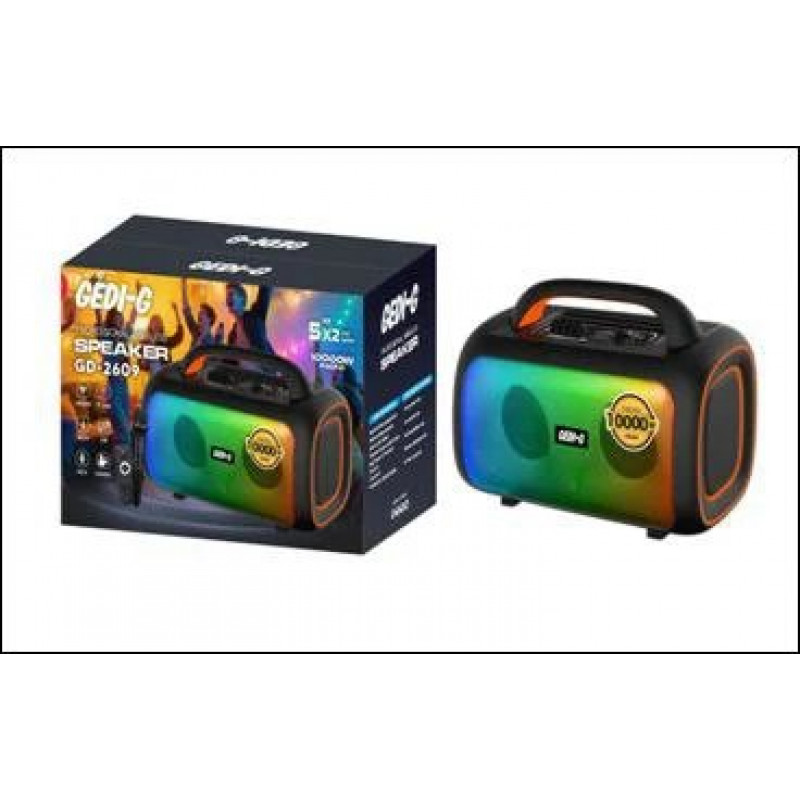 Аккумуляторная блютуз колонка 2 микрофона 2*5″ GD-2609 — насыщенный и мощный звук в компактном корпусе. Bluetooth подключение с любого устройства. Водонепроницаемый корпус позволяет использовать на улице. Аккумулятор на 8-12 часов работы. Встроенный микрофон для громкой связи.