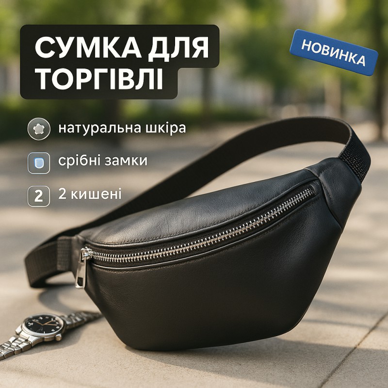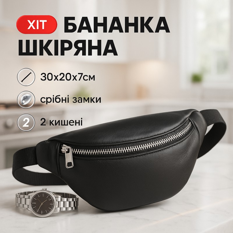 Наша кожаная бананка сумка черного цвета – это стильный и функциональный аксессуар, который подходит как для мужчин, так и для женщин.