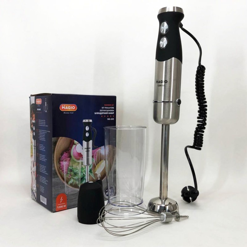 | Название | Блендер погружной 3в1 Magio MG-645 1200 Вт, миксер блендер ручной, блендер для молочных коктейлей |