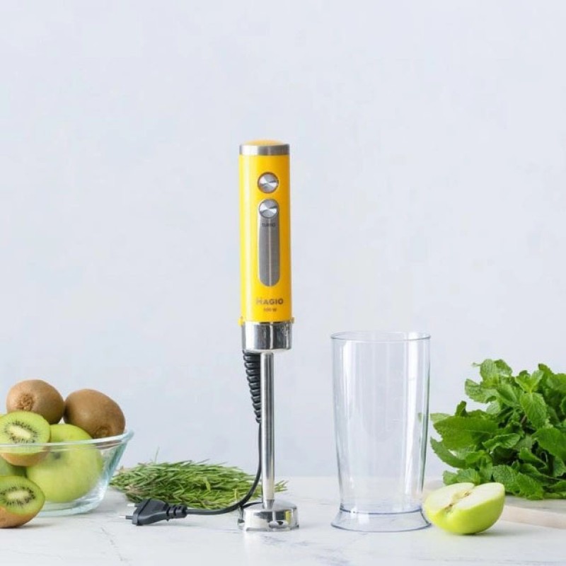 Блендер Magio MG-646 позволит вам разнообразить ваше меню и приготовить новый кулинарный шедевр. Мощность блендера составляет 800 Вт, что обеспечивает бесшумную эффективную работу в течение длительного времени. Погружная часть выполнена из нержавеющей стали — залог устойчивости к износу и долговечности. Блендер может работать на 13 плавно переключающихся скоростях. Переключатель находится на рукоятке прибора, что весьма удобно. В комплект входит пластиковый мерный стакан. Эти свойства в сочетании с компактным дизайном делают блендер незаменимым помощником на вашей кухне.