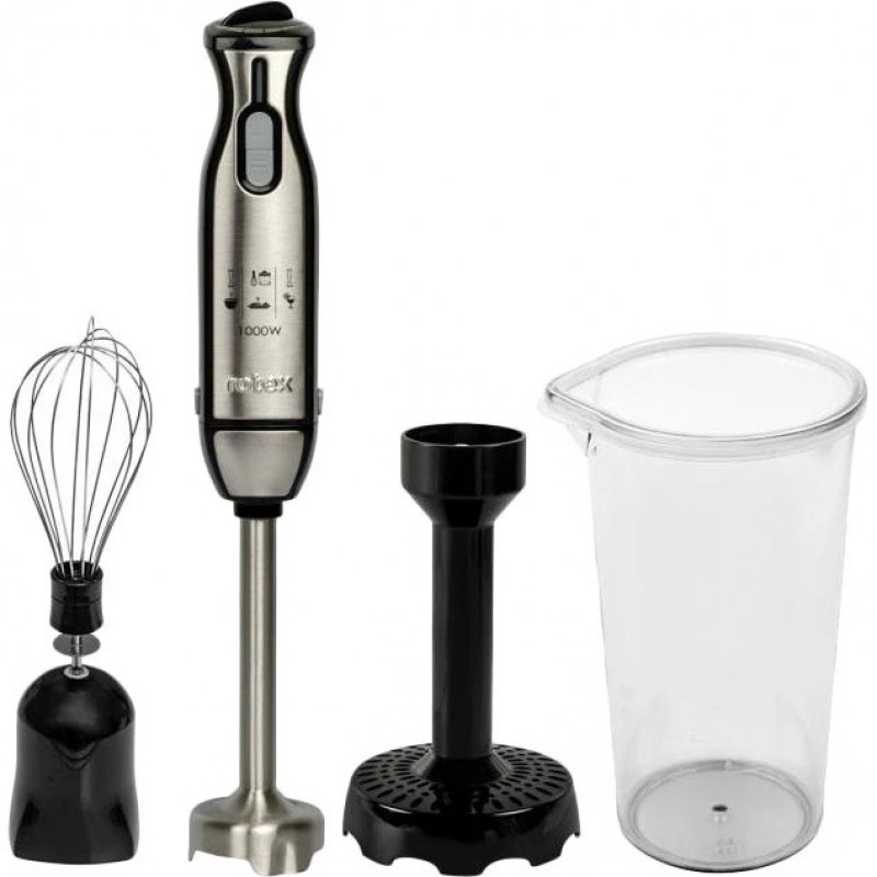 Блендер Rotex RTB805-B 1000Вт За допомогою металевої ніжки є можливість (подрібнити харчування для діток, сирні десерти, збити олію, майонез…), віночком збити креми, омлет, насадкою для пюре, приготувати картопляні пюре. …). Блендер має дві швидкості з плавним регулятором на корпусі. Потужність, Вт 800 Тип Занурювальний Насадки Віночок для збивання Гарантія 12 місяців