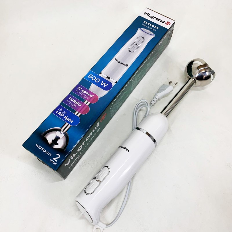 Погружной блендер VILGRAND VBH6209 White — практичний та функціональний інструмент для швидкого і якісного приготування різноманітних страв. Він здатний трансформувати складний процес подрібнення та змішування в легку кухонну операцію завдяки продуманій комплектації, потужності та ергономічному дизайну.