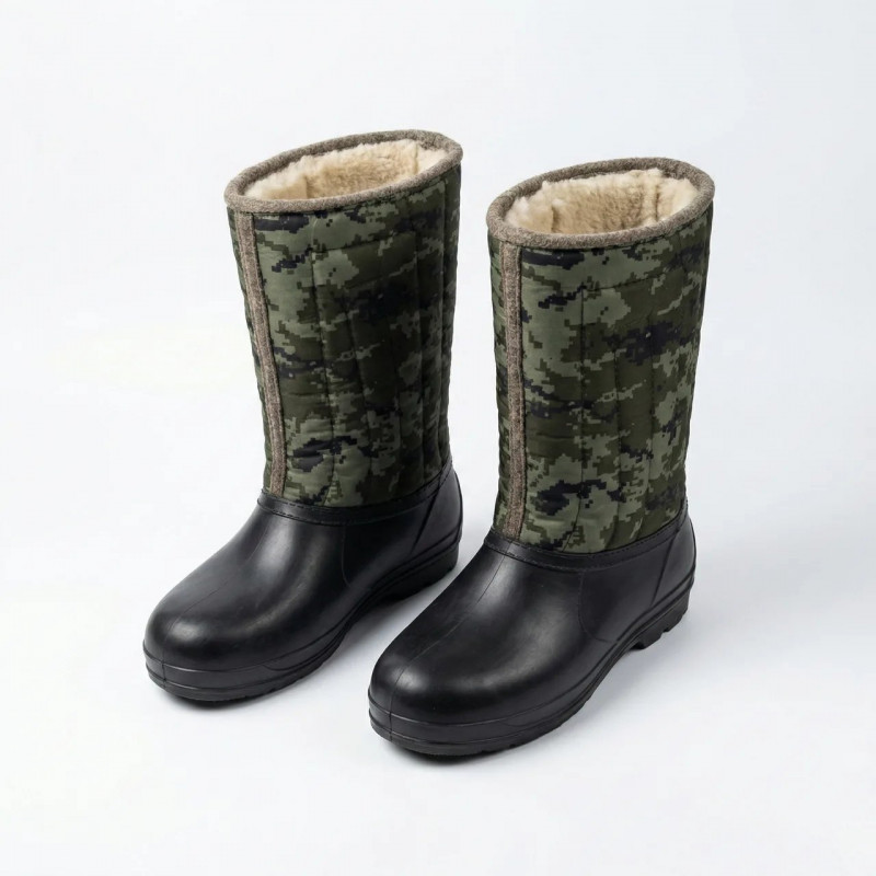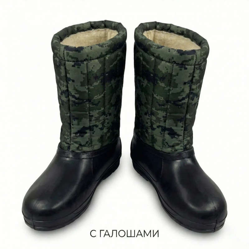 Бурки мужские зимние Камуфляж высокие. Теплые сапоги на меху для рыбалки и охоты (Галоши) (Валенки) (41 - 45) (арт. 8726)