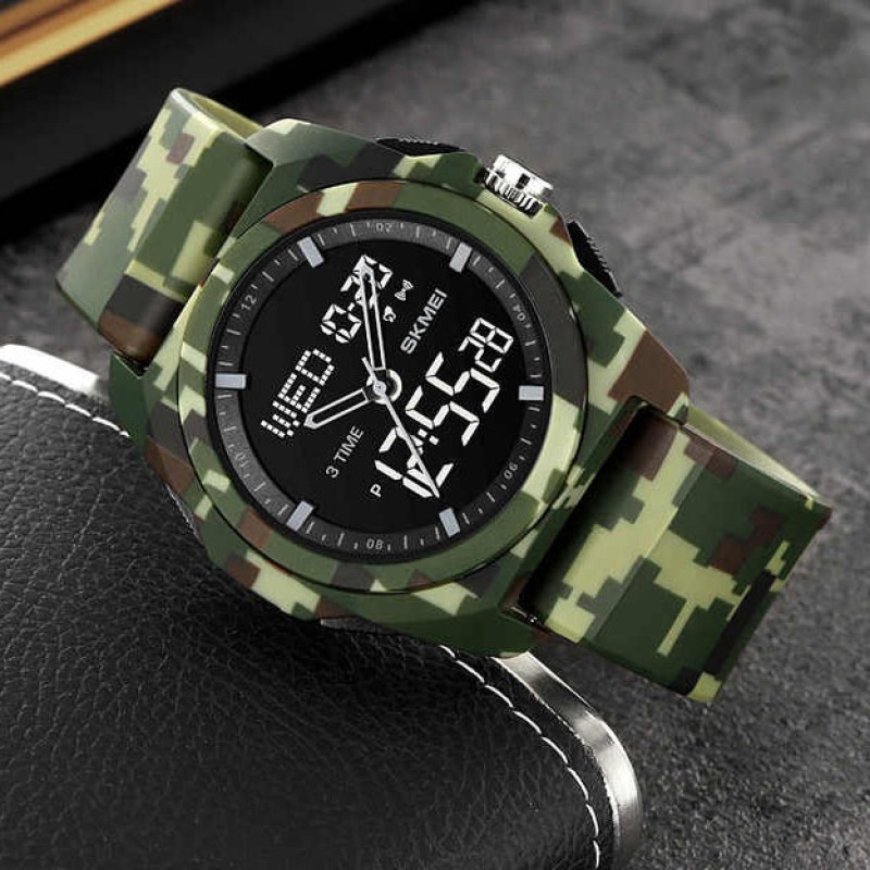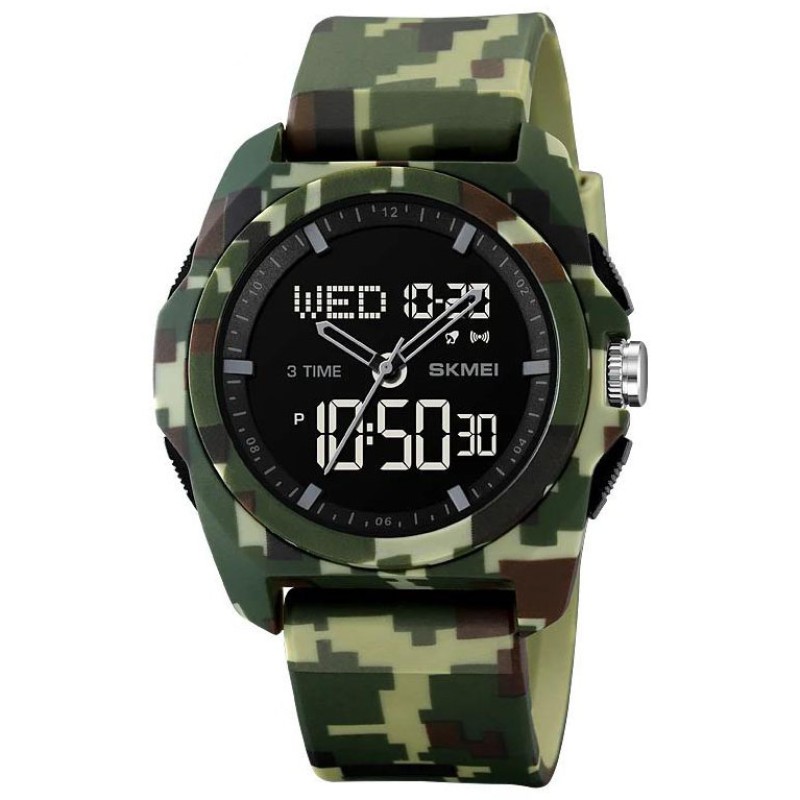 Часы SKMEI 2199CMGN — это выбор тех, кто ценит практичность, выносливость и уникальный внешний вид. Камуфляжный дизайн в цифровом стиле придает ему выразительный характер, идеально подходящий для активного отдыха, туризма или военного стиля в одежде. Комбинация аналоговой и цифровой индикации позволяет быстро ориентироваться во времени, а контрастный дисплей обеспечивает отличную видимость в любое время суток.