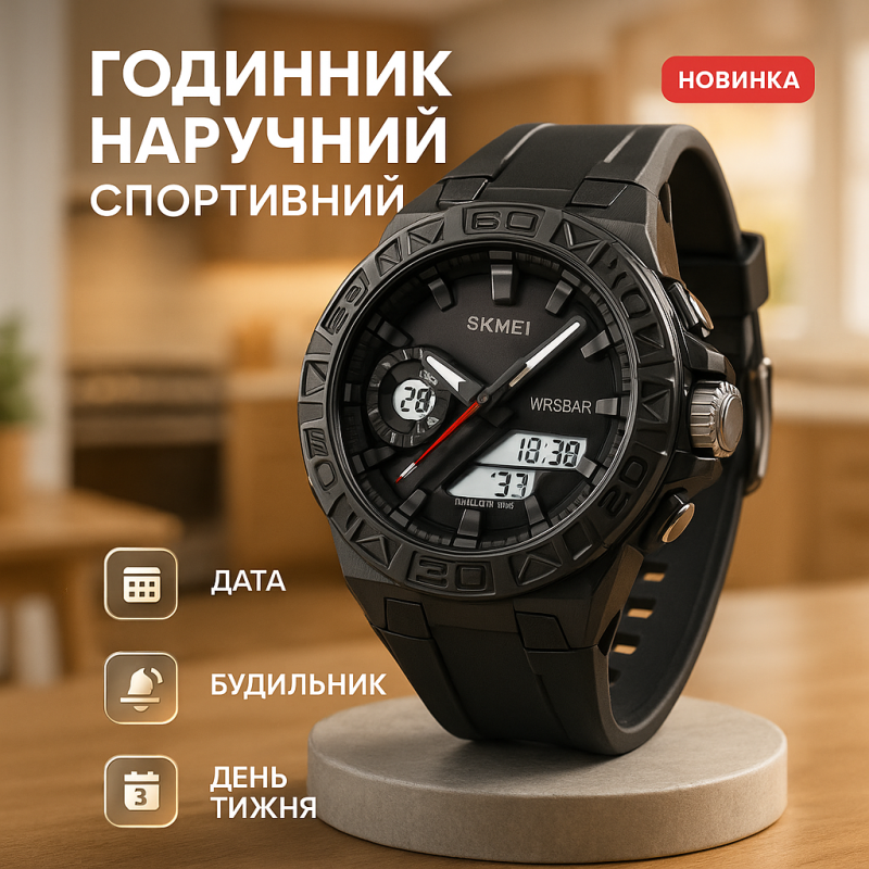 Часы идеально подходят для ежедневного ношения, работы, путешествий или спорта. SKMEI 2276BKWT оснащен стандартным набором практичных функций: будильник, дата, день недели, таймер, секундомер, подсветка и двойное время. Водозащита 50 метров позволяет не снимать его во время мытья рук, в дождь или во время активного отдыха. Это универсальный вариант на каждый день с акцентом на выносливость и лаконичный стиль.