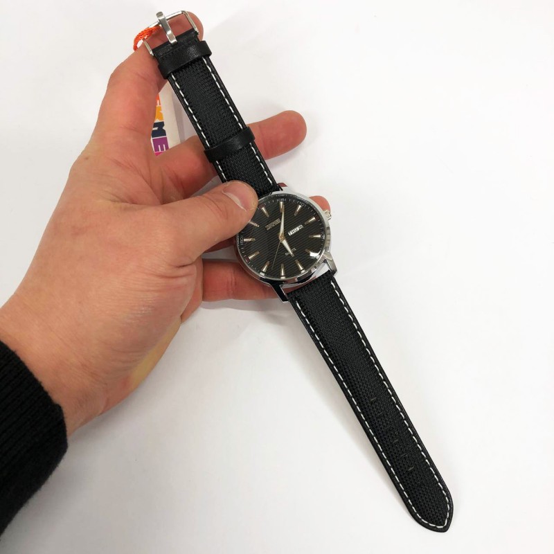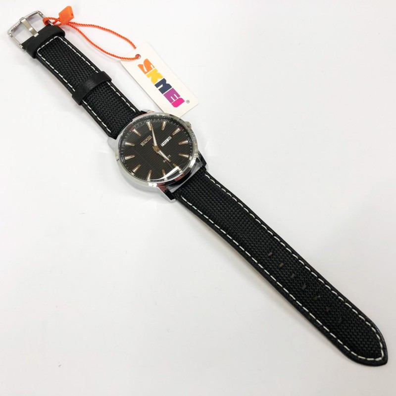 Часы SKMEI 9303SIBK — это стильная классика для тех, кто ценит элегантность и лаконичный дизайн. Сдержанный черный циферблат с вертикальной текстурой дополнен серебристым корпусом, а метки часов гармонично сочетаются с изящными стрелками. Благодаря сочетанию тканевого ремешка с контрастной строчкой, модель выглядит современно и легко адаптируется под любой образ.