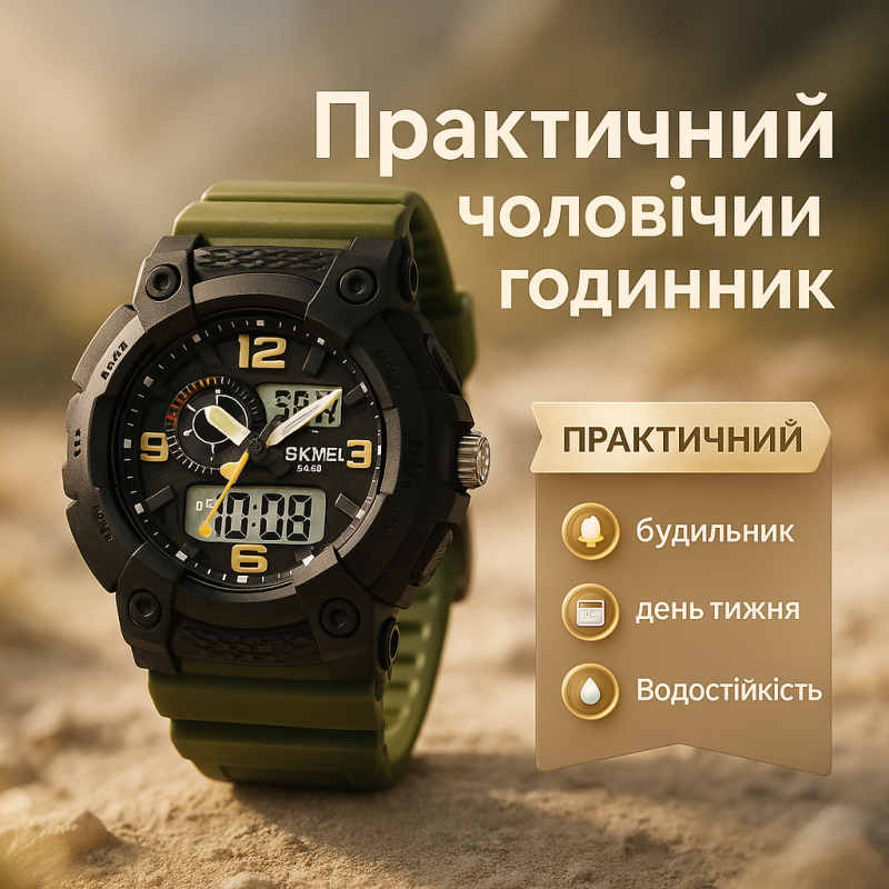 Часы SKMEI 2397AG — это сочетание надежной функциональности и яркого военного стиля. Модель имеет массивный корпус с четкими цифровыми дисплеями, позволяющими удобно контролировать время, дату, будильник и другие функции. Аналоговая и электронная индикация дополняют друг друга, обеспечивая максимальное удобство в любых условиях. Эти часы являются отличным выбором для активных мужчин, которые ценят практичность и современный дизайн.