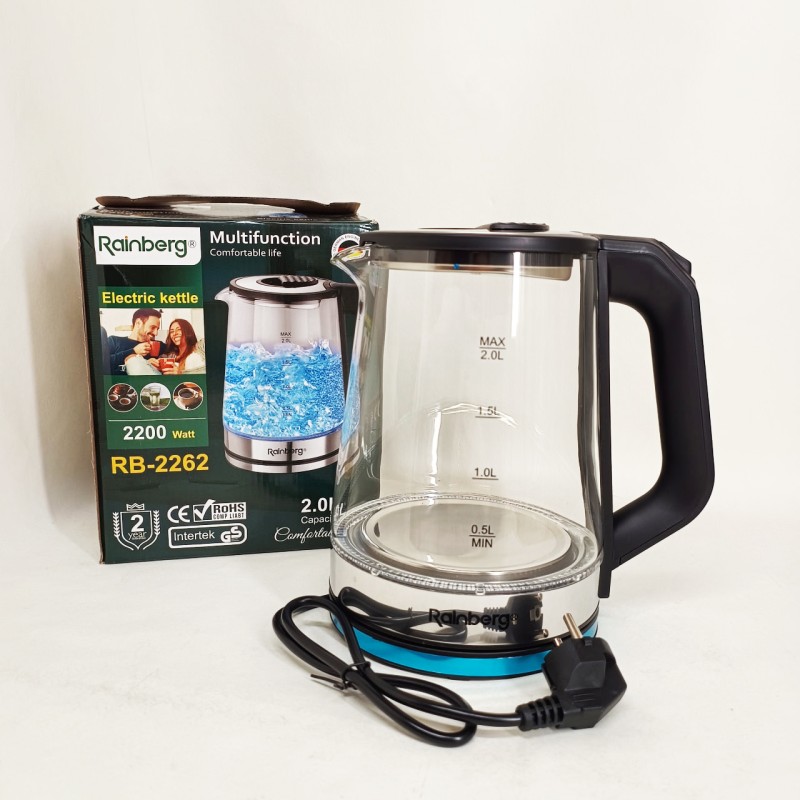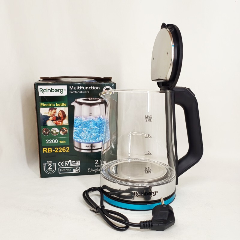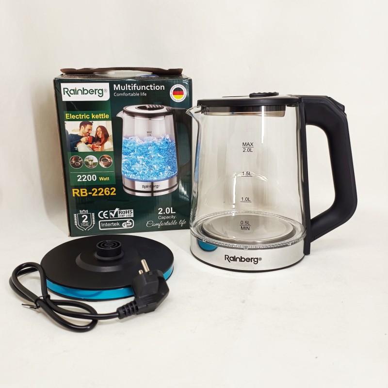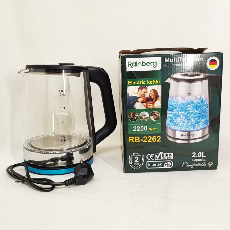 | Название | Чайник электрический стеклянный электрочайник с LED подсветкой Rainberg RB-2262 2л 2200Вт |