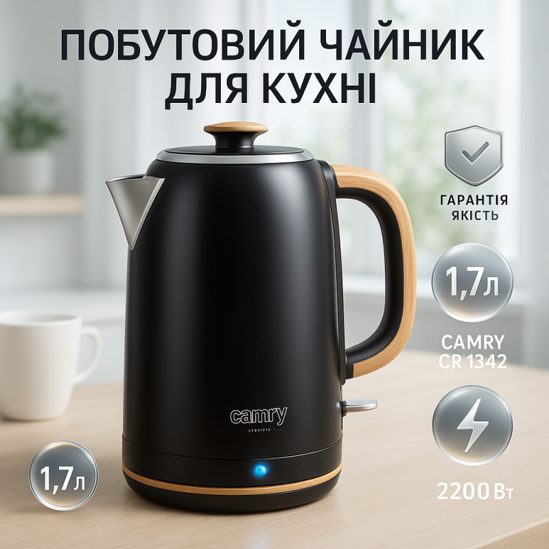 | Название | Чайник электрический Camry CR 1342 1.7Л STRIX 2200Вт |
