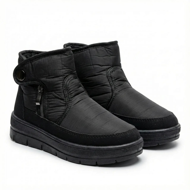 Женские короткие зимние дутики — тепло и мягкость домашнего уюта! Эти ботинки созданы для того, чтобы вы забыли о холоде. Модель сочетает в себе практичность дутиков и комфорт мягких бурок. Верх выполнен из стеганого водоотталкивающего текстиля с усиленными вставками у подошвы. Лаконичный черный цвет делает их универсальными под любую одежду. Почему стоит купить эту пару: Максимальное тепло: Внутри — густой, плотный мех серого цвета, который заполняет все пространство ботинка, укутывая ногу теплом. Легкость обувания: Благодаря молнии сбоку (и удобному крою) модель очень легко обувать, она подойдет даже на ногу с высоким подъемом. Удобная подошва: Гибкая и легкая подошва с протектором обеспечивает уверенность на скользких поверхностях и не утяжеляет ногу при ходьбе. Стильный вид: Аккуратная прострочка и декоративный элемент (пуговица) на застежке добавляют модели шарма. Характеристики: Сезон: Зима. Материал верха: Текстиль (плащевка) + эко-замша. Материал подкладки: Очень теплый эко-мех. Застежка: Молния. Цвет: Черный. Размеры: 37, 38, 39, 40, 41, 42. ❄️ Заказывайте короткие теплые дутики — подарите своим ножкам комфорт этой зимой!