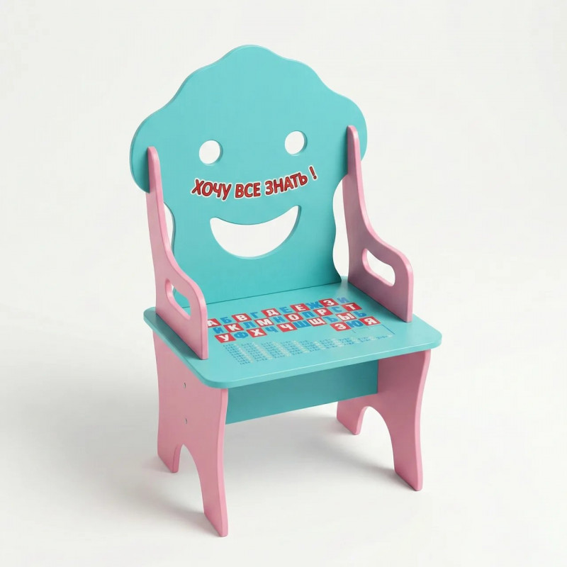 Детский обучающий стульчик "Хочу все знать" с азбукой и таблицей умножения. Деревянный стул (Бирюзовый/Розовый) можно заказать в интернет-магазине Shtyrman. Перед покупкой проверьте модель, производителя, наличие и характеристики.