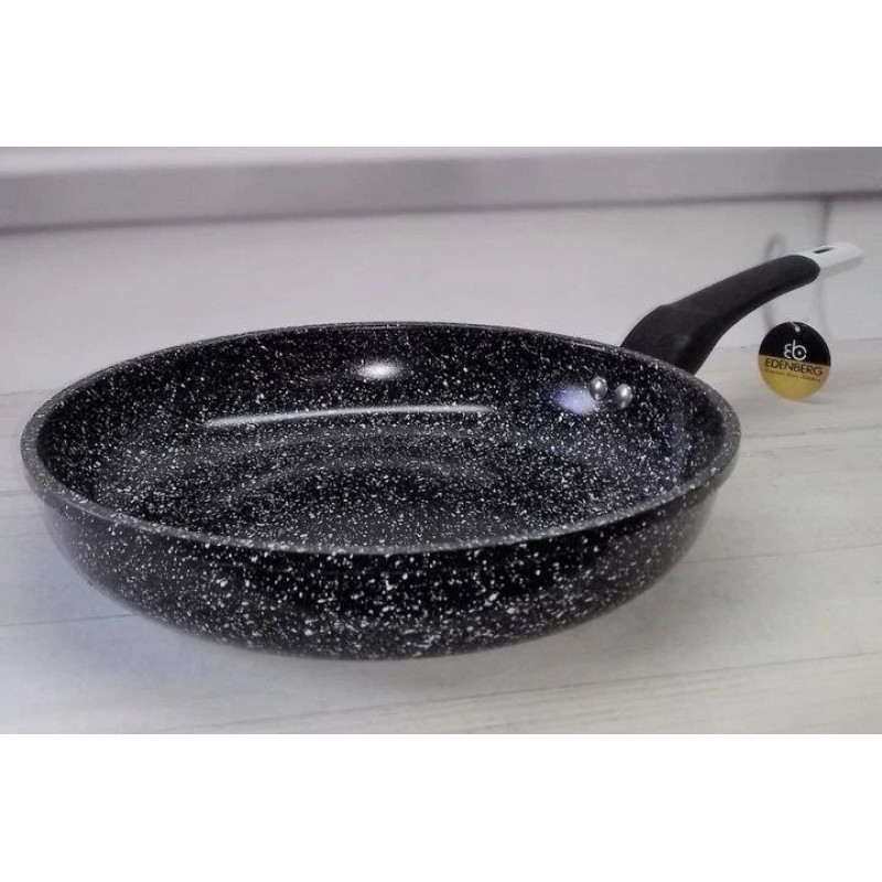EB-4126 Сковорода 28 см. Темне Гранітне Покриття — равномерный нагрев и антипригарное покрытие для здорового приготовления. Мраморное или гранитное покрытие не требует большого количества масла. Толстое дно равномерно распределяет тепло. Бакелитовая ручка не нагревается. Подходит для газовых, электрических и индукционных плит.