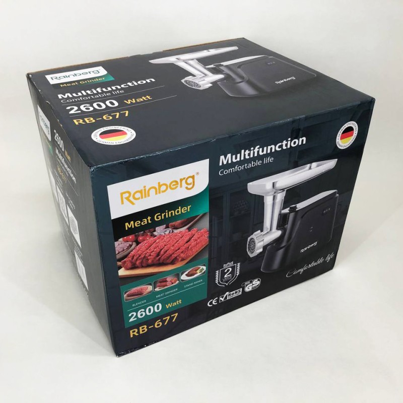 Электрическая мясорубка Rainberg RB-677 2600 Вт с насадкой для колбас, мясорубка с металлическим редуктором можно заказать в интернет-магазине Shtyrman. Перед покупкой проверьте модель, производителя, наличие и характеристики.