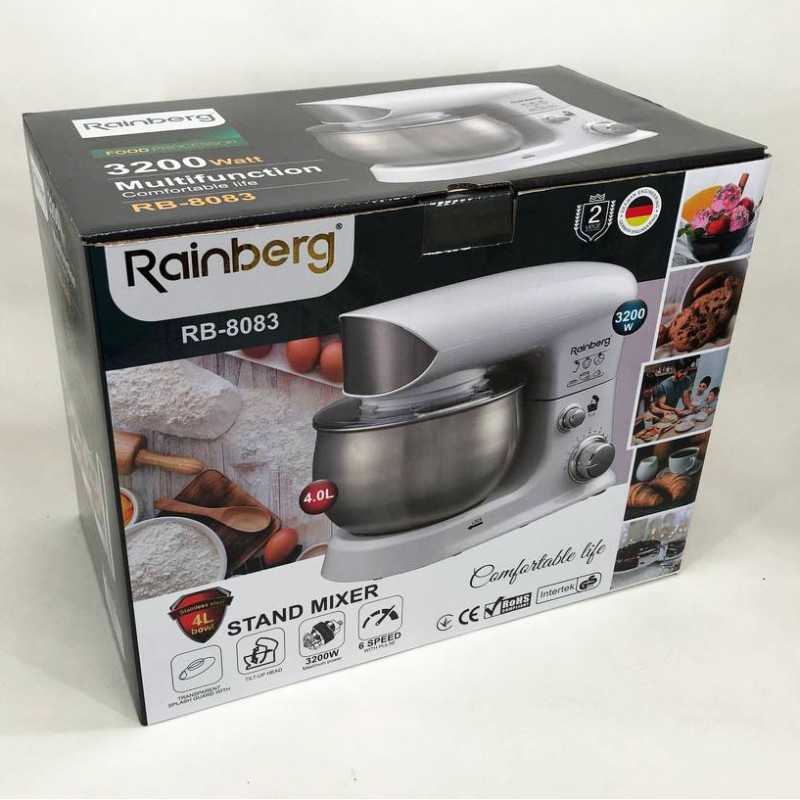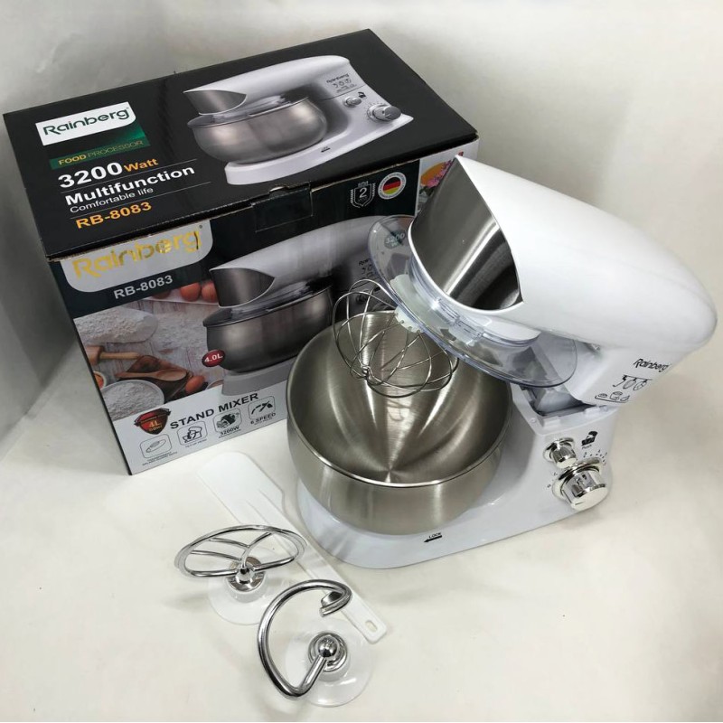 Электрический планетарный миксер тестомес Rainberg RB-8083 3200 Вт с насадками. Цвет: белый можно заказать в интернет-магазине Shtyrman. Перед покупкой проверьте модель, производителя, наличие и характеристики.