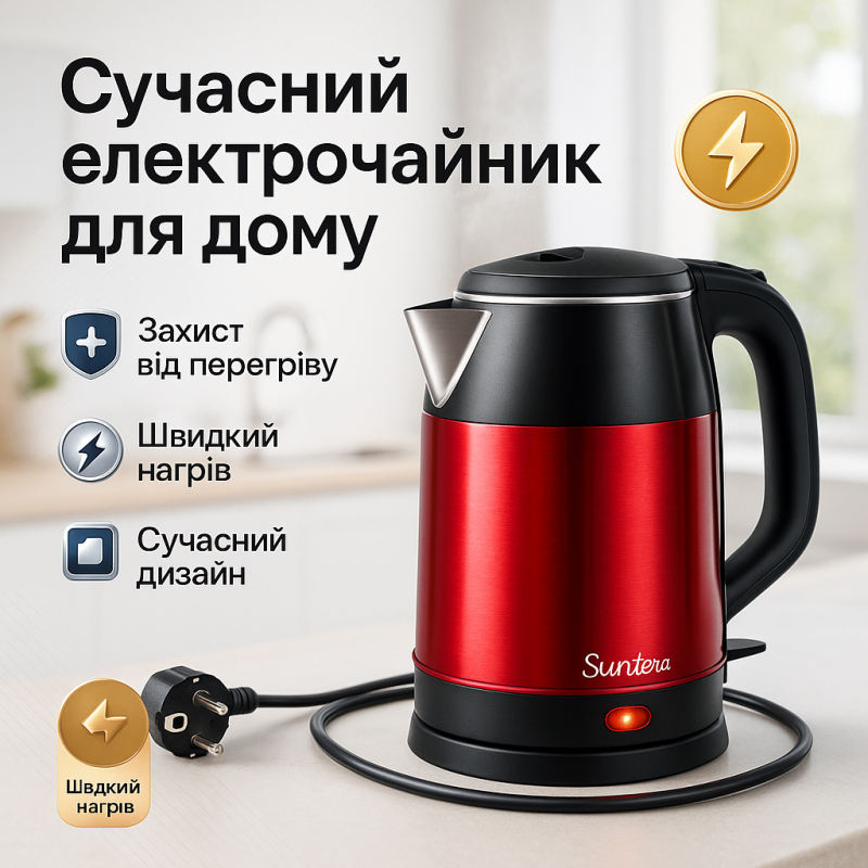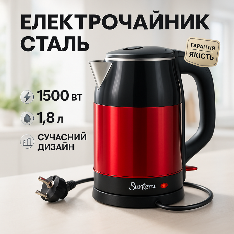 | Название | Электрочайник дисковый 1.8 л 1500 Вт с двойными стенками Suntera EKB-326R красный |