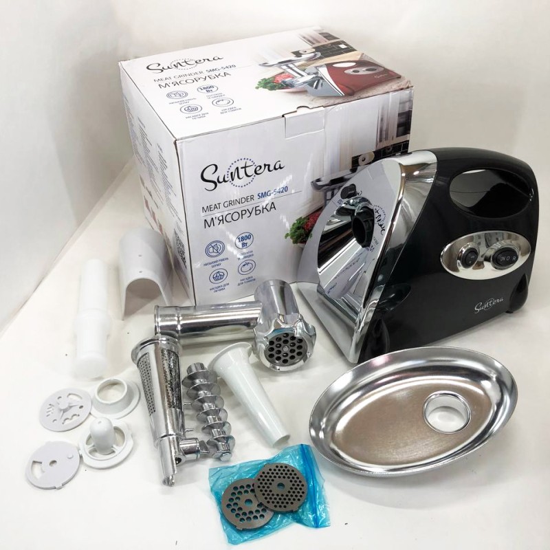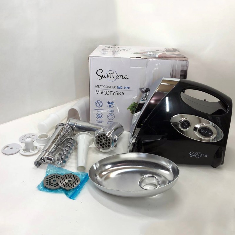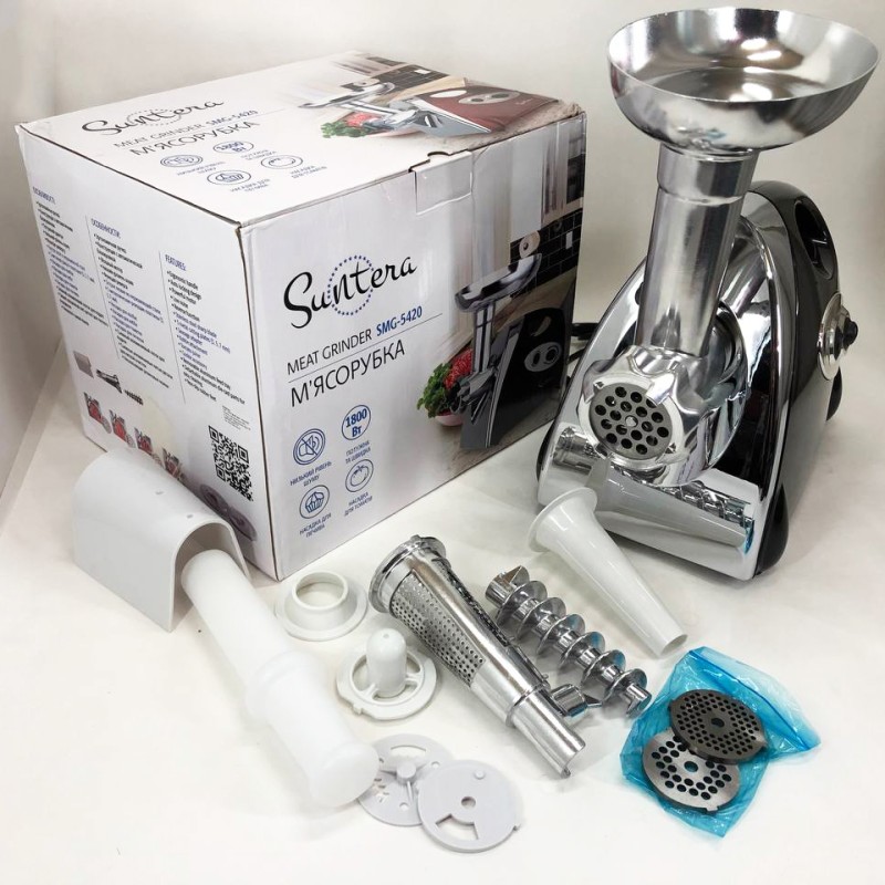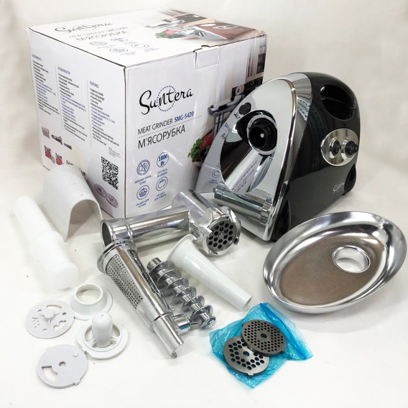 | Название | Электромясорубка Suntera SMG-5420B 1800 Вт, электромясорубка соковыжималка для томатов, мясорубка для дома |