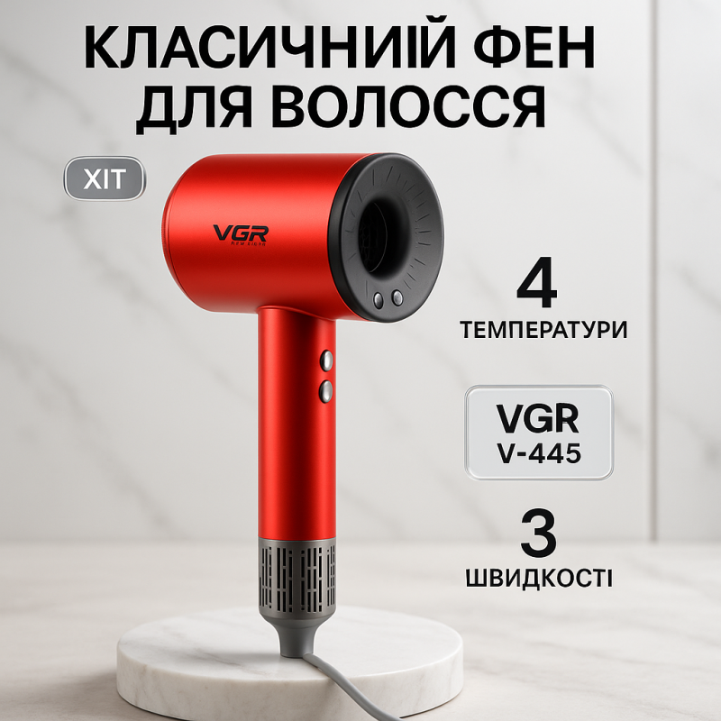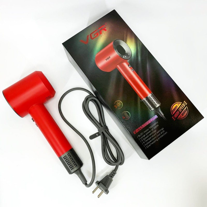 Фен профессиональный VGR V-445 RED, 3 уровня обдува, 4 уровня температуры, 1600Вт