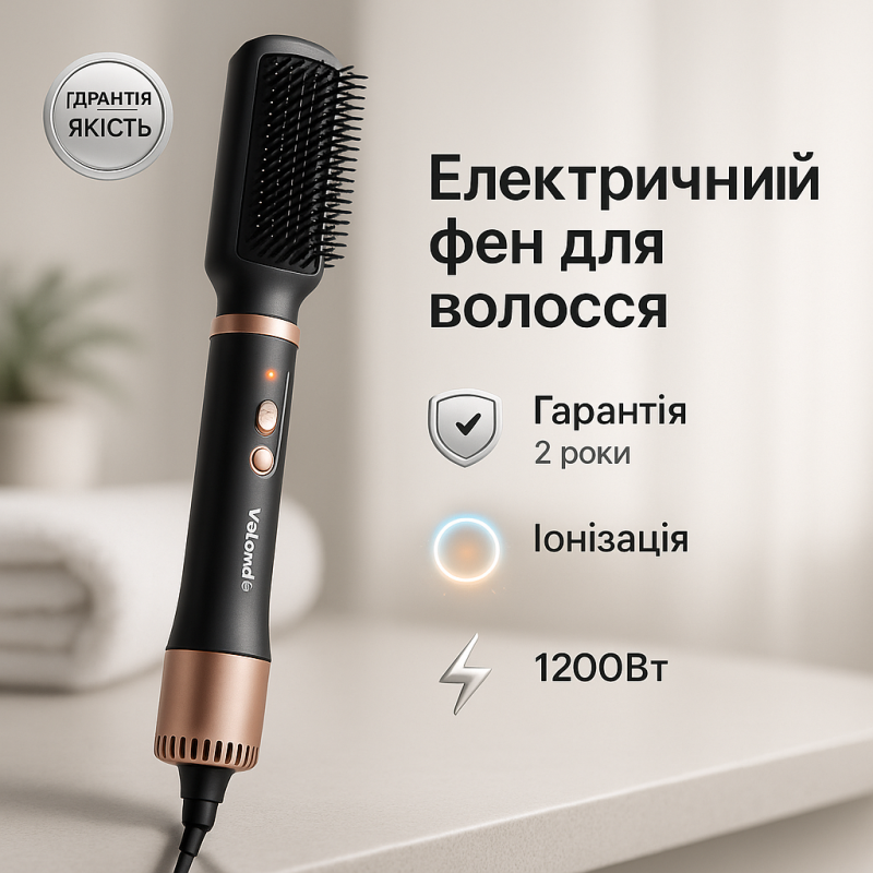 Фен-щетка ViLgrand VHD-1225BR Black- мощный мультистайлер с помощью которого можно выполнять сушку волос, различные укладки, завивку волос и моделировать их как угодно.