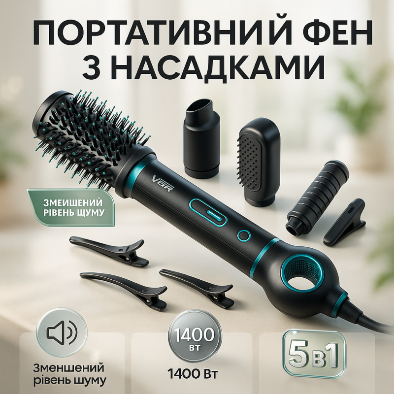 Фен-стайлер VGR 5 в 1 V-486 — это профессиональный многофункциональный прибор для сушки, укладки и стайлинга волос. Корпус выполнен в современном дизайне с эргономичной ручкой, обеспечивающей удобное удержание и комфорт при использовании. Мощность 1400 Вт гарантирует быстрый и эффективный поток воздуха для качественной сушки и формирования прически.