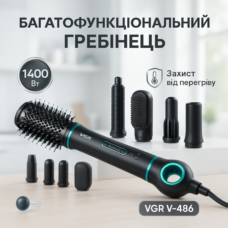 Фен-стайлер VGR 5 в 1 V-486 сочетает стильный дизайн, высокую производительность и функциональность. Он станет практичным и универсальным инструментом для создания разнообразных укладок и поддержания аккуратного внешнего вида волос.