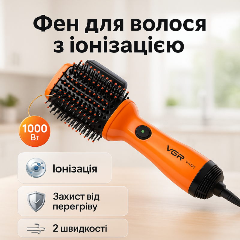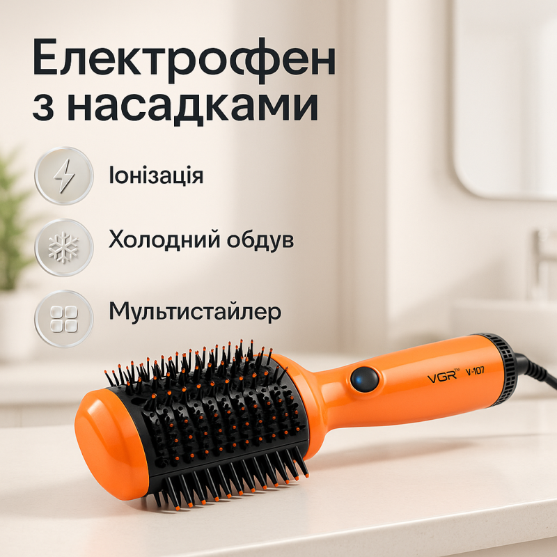 | Название | Фен стайлер для укладки и завивки волос VGR V-497. Цвет: оранжевый |