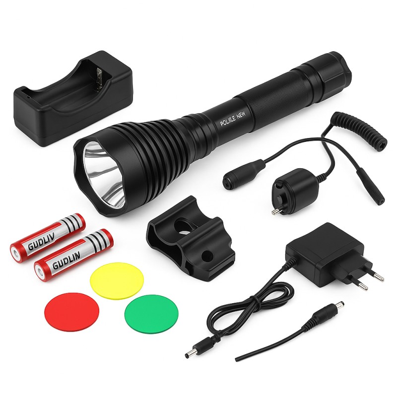 Фонарь Police BL - Q2800 T6 идеально подходит для охоты потому как сделан из прочного металлического анодированного корпуса, пыле - и влагозащищенный. Рифленая поверхность корпуса позволяет уверенно держать фонарь мокрыми руками в самых экстримальных ситуациях. Выступы на корпусе фонаря Police BL - Q2800 T6 защищают от повреждения стекло. Фонарь Police BL - Q2800 T6 оборудован уплотнительными резиновыми кольцами на резьбовых соединениях для защиты от проникновения влаги и пыли. Фонарь комплектуется выносной кнопкой, которая имеет три кнопки и работает в 2 - х режимах. Две кнопки (нажал светит, отпустил не светит) и одна кнопка (нажал и отпустил светит, нажал и отпустил не светит).