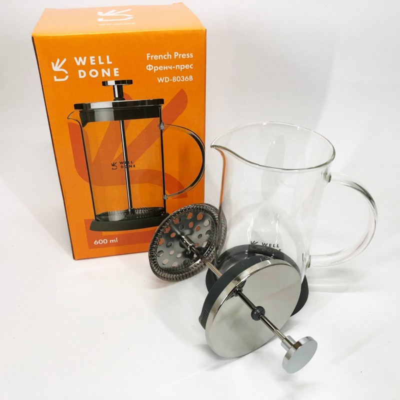 | Название | Френч-пресс Well Done WD-8036B из термостойкого стекла 600 мл, Чайник для заваривания трав прозрачный |