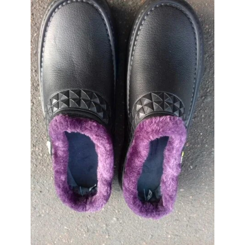 Галоши сабо женские зимние из пены ЭВА. Черные утепленные тапочки с фиолетовым мехом. 37-41