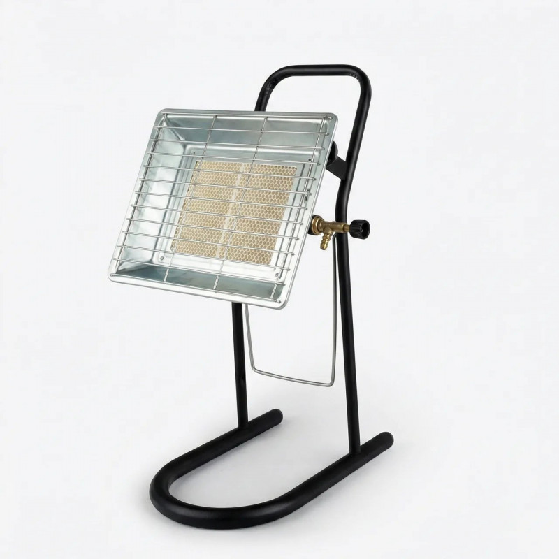 Обеспечьте теплом свое рабочее место или хозяйственное помещение за считанные минуты! Этот портативный газовый обогреватель на удобной подставке — идеальное решение для гаражей, мастерских, складов, теплиц или строительных площадок, где нет стационарного отопления. Преимущества модели: Эффективный нагрев: Керамический элемент быстро нагревается и отдает тепло с помощью инфракрасного излучения, нагревая предметы и людей, а не только воздух. Удобная конструкция: Обогреватель закреплен на устойчивой металлической ножке с U-образным основанием. Это позволяет безопасно разместить его на полу вдали от газового баллона. Регулировка наклона: Конструкция позволяет менять угол наклона горелки, чтобы направить поток тепла в нужную зону. Безопасность: Передняя часть защищена металлической решеткой, предотвращающей случайное касание к раскаленной керамике. Простое подключение: Оборудован штуцером для подключения газового шланга и краном-регулятором подачи газа. Характеристики: Тип: Инфракрасная газовая горелка Тип нагревательного элемента: Керамика Установка: Напольная (на ножке) Топливо: Пропан/Бутан (сжиженный газ) Особенности: Регулировка угла наклона, защитная решетка