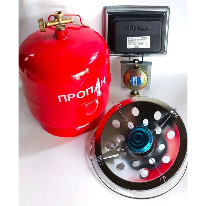 Газовый комплект 3в1: Баллон 8л + Горелка + Инфракрасный обогреватель Nurgaz 1.5 кВт (Турция)
