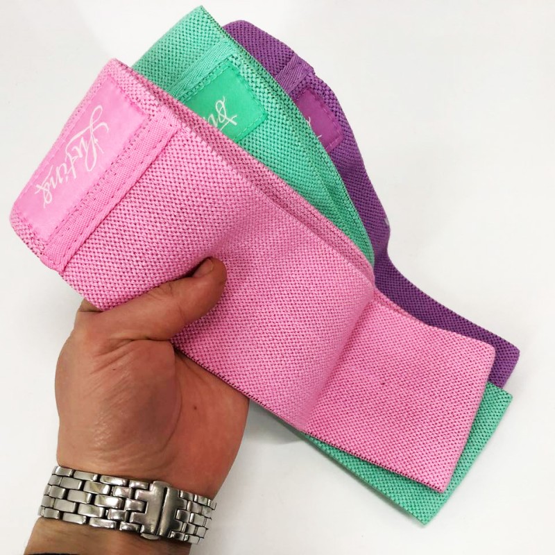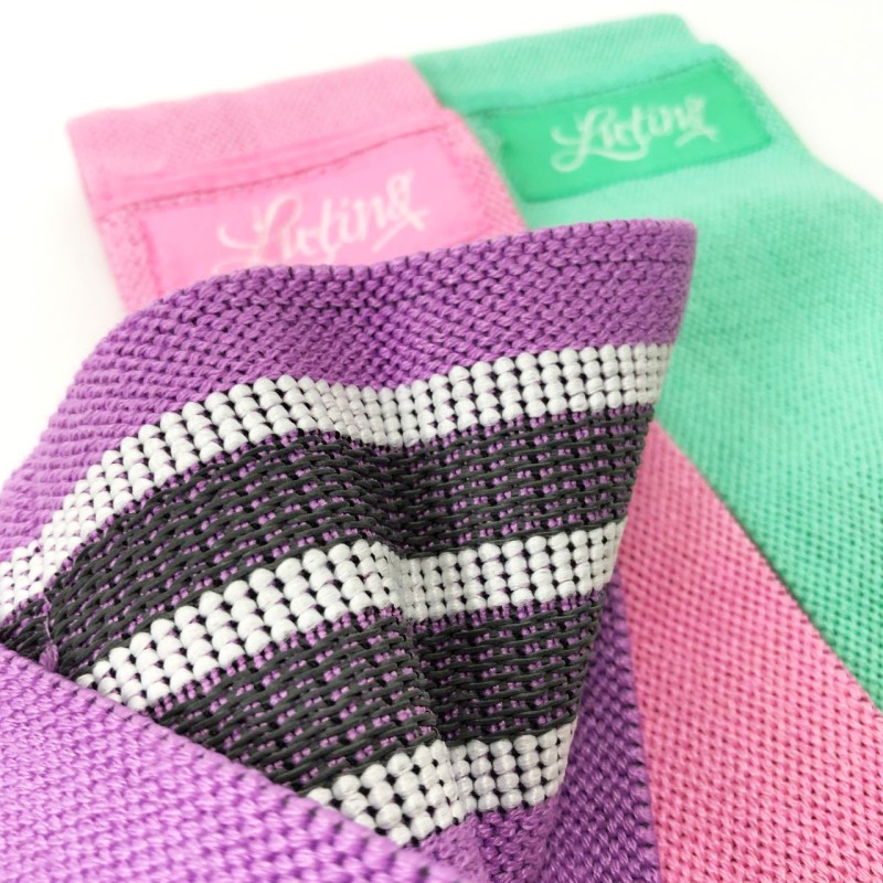 В набор входит 3 яркие тканевые резинки разного уровня сопротивления: легкий (зеленая) является самой «слабой» среди остальных, обладая силой натяжения в 10-15 кг; средний (розовая): средняя тканевая резинка способна похвастаться повышенным уровнем сопротивления, выдерживая 15-20 кг; тяжелый (фиолетовая): самая сильная среди резинок и обладает силой натяжения в 20-25 кг.