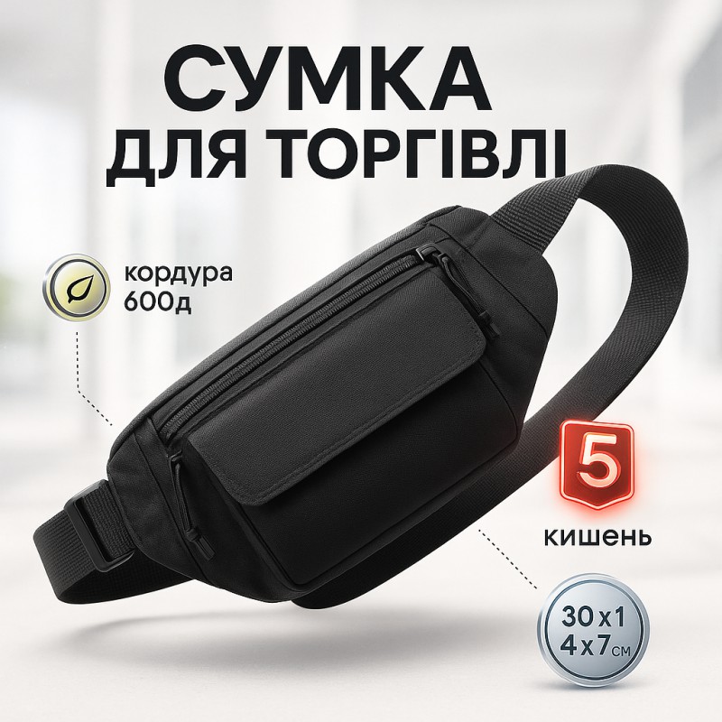 | Название | Качественная и надежная тактическая сумка-бананка из прочной и водонепроницаемой ткани черная через плечо |