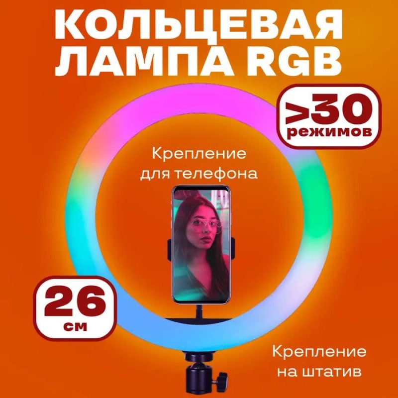 Кольцевая светодиодная лампа RGB LED RING MJ26 26 см с держателем телефона, кольцевая лампа большая можно заказать в интернет-магазине Shtyrman. Перед покупкой проверьте модель, производителя, наличие и характеристики.