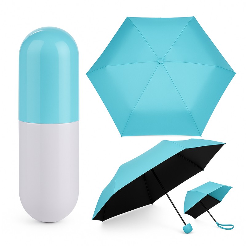 | Название | Компактный зонтик в капсуле-футляре Голубой, маленький зонт в капсуле. Цвет: голубой |