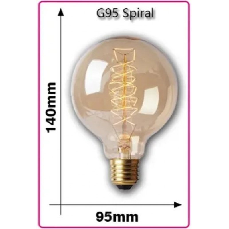 Декоративная лампа накаливания диаметром 95мм с цоколем E27 превратит обычное освещение в стильный элемент интерьера. Теплый янтарный свет и видимая нить накала создают неповторимую атмосферу ретро-шика.