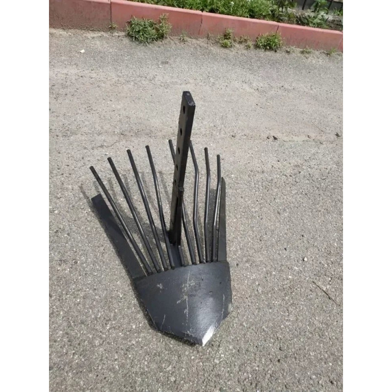Лапа-копалка усиленная для мототрактора, мотоблока — это универсальное приспособление для выкапывания картофеля и других корнеплодов. Усиленная конструкция обеспечивает долговечность и эффективность в работе. Удлинённый носик и усиленные нижние прутья минимизируют повреждение урожая и повышают производительность. Характеристики: Ширина подгребания: 45 см Глубина обработки: до 20 см Длина носика: 25 см Высота стойки: 41 см Толщина стойки: 12 мм Толщина прутков: 10 мм Вес: 7,5 кг Преимущества: Удлинённый носик позволяет аккуратно и эффективно подкапывать урожай. Усиленные нижние прутья повышают прочность и надёжность конструкции. Простота монтажа и совместимость с мототракторами и мотоблоками. Высокая производительность и долгий срок службы.