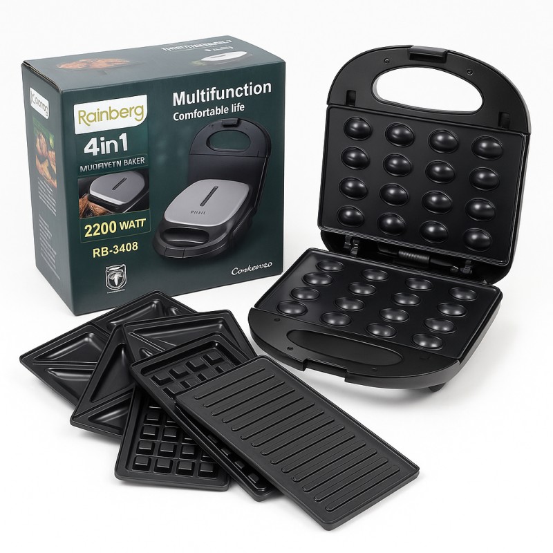 | Название | Мультимейкер Rainberg RB-5408 4 в 1 вафельница, бутербродница, орешница, гриль 2200 Вт электрогриль |