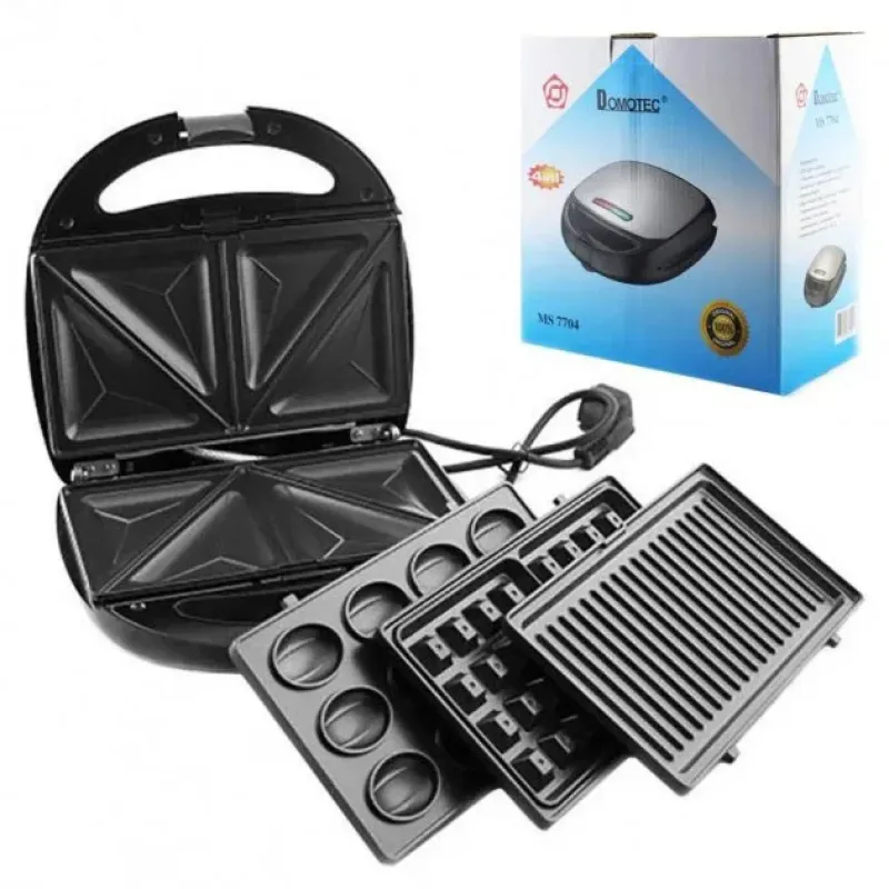 Мультипекарь вафельница бутербродница сендвичница гриль электрическая 4 в 1 с формами Domotec MS-7704