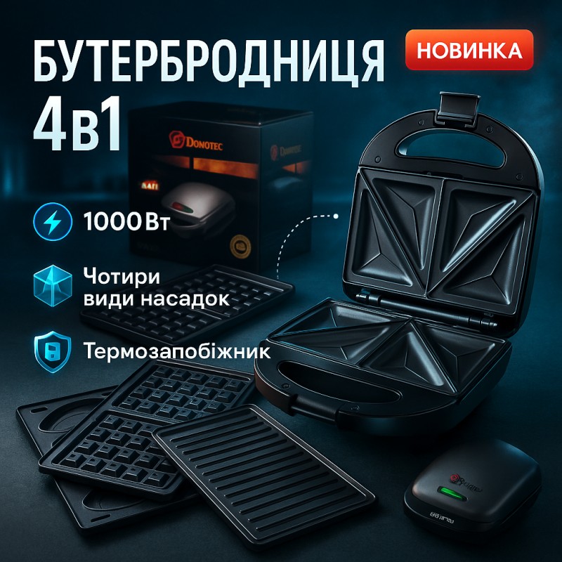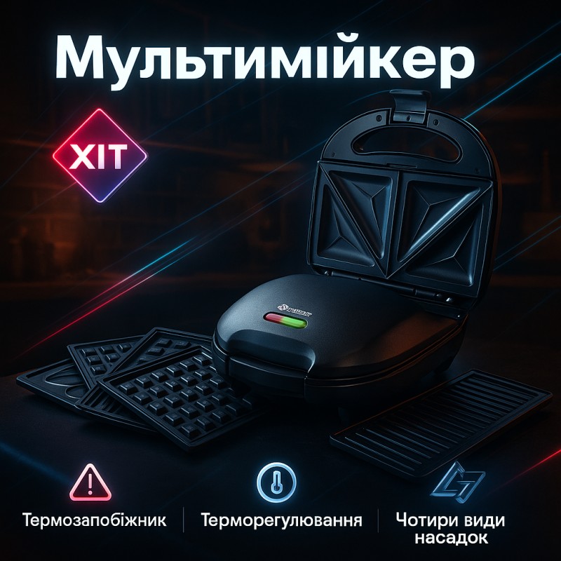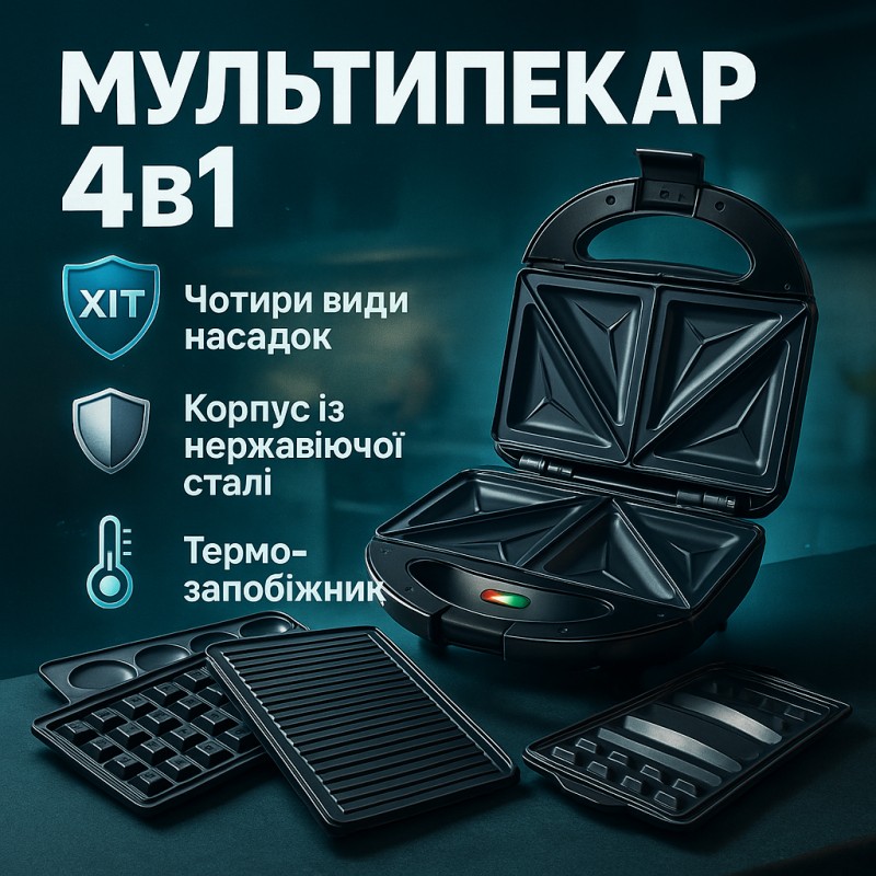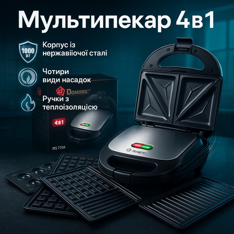 НазваниеМультипекарь вафельница бутербродница сендвичница гриль электрическая 4 в 1 с формами Domotec MS-7704