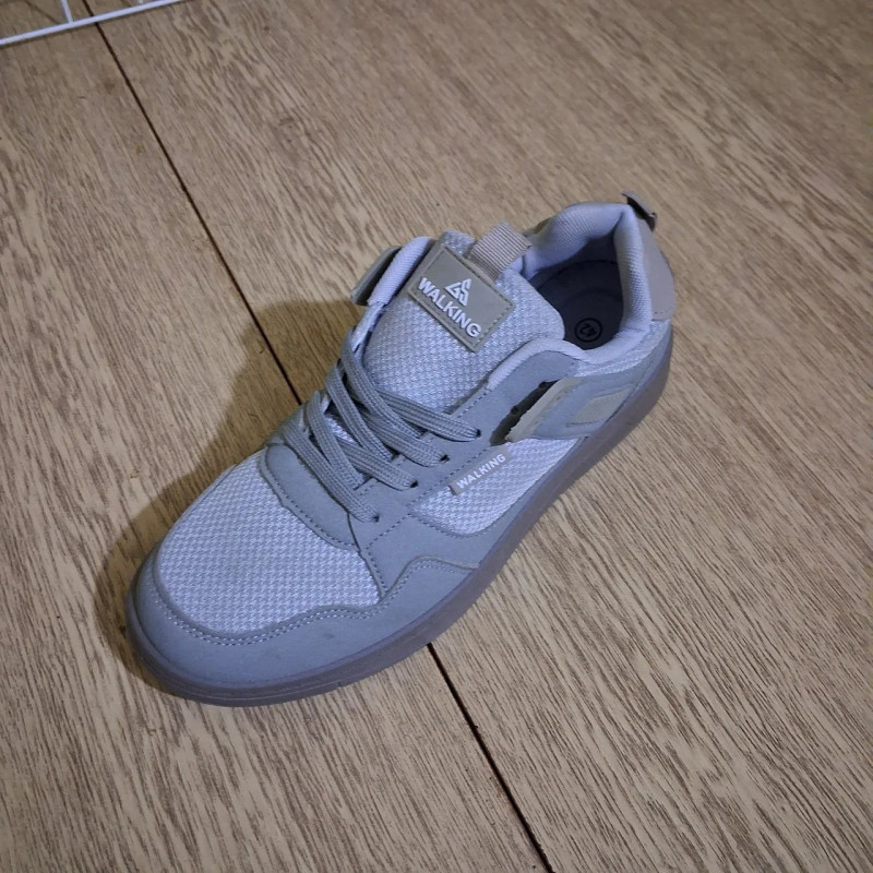 Практичные и стильные мужские кроссовки бренда WALKING в универсальном светло-сером цвете. Эта модель разработана специально для активного повседневного использования в весенне-летний сезон. Верх обуви выполнен из комбинации прочной эко-кожи (нубук) и вставок из "дышащей" текстильной сетки, что обеспечивает отличную вентиляцию и комфорт даже в жаркую погоду. Кроссовки имеют классическую шнуровку для надежной фиксации стопы и мягкую текстильную подкладку внутри, которая предотвращает натирание. Подошва изготовлена из гибкого и износостойкого материала (ПВХ), что гарантирует хорошую амортизацию при ходьбе. Лаконичный дизайн и сдержанный серый цвет делают эту пару идеальным дополнением к джинсам, шортам или спортивным штанам. Преимущества: Вентиляция: Сетчатые вставки позволяют ногам дышать. Легкость: Обувь почти не ощущается на ноге, идеально для длительных прогулок. Универсальность: Подходят под любой стиль одежды. Характеристики: Производитель: WALKING Материал верха: Эко-кожа / Текстильная сетка Материал подошвы: ПВХ Цвет: Серый Застежка: Шнуровка Сезон: Весна / Лето / Осень Пол: Мужские