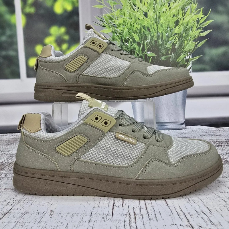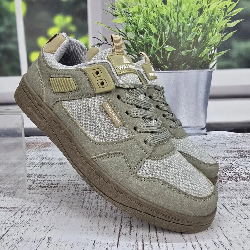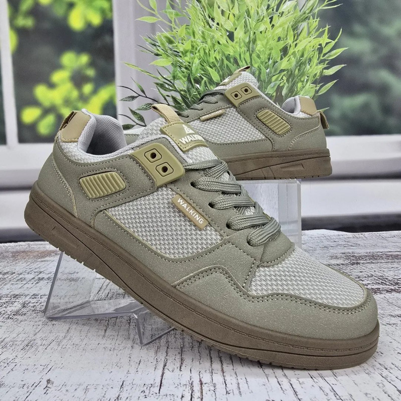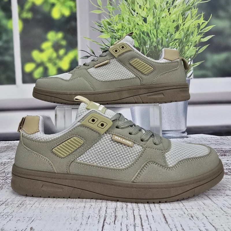 Ищете идеальную обувь для долгих прогулок по городу? Мужские кроссовки из серии "Walking" в трендовом оливковом цвете (хаки) созданы именно для этого. Дизайн модели сдержанный и стильный: верх и подошва выполнены в одном тоне, что выглядит очень современно и дорого. Комбинированный верх сочетает прочные накладки из эко-нубука и вставки из крупной дышащей сетки, которая обеспечивает отличную циркуляцию воздуха в теплую погоду. Пластиковые элементы шнуровки и усиленная пятка добавляют конструкции надежности. Подошва гибкая, износостойкая и комфортная для стопы. Это универсальная пара, которая подойдет и к джинсам, и к шортам. Характеристики: Материал верха: Эко-нубук + Текстильная сетка Материал подошвы: ПВХ (в тон верха) Цвет: Оливковый / Хаки (Бежево-зеленый) Декор: Надпись "WALKING", пластиковые люверсы Застежка: Шнуровка Сезон: Лето / Теплая весна-осень Размерная сетка: 41-45