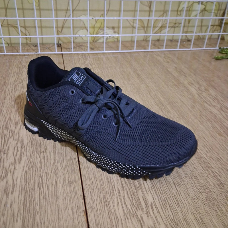 Универсальные черные кроссовки из дышащей сетки. Бренд Situo. Легкая подошва с декором (крапинка). Практичные, стильные, не парят. Размеры 41-45. Полное описание: Мужские кроссовки Situo в цвете Full Black — это база мужского гардероба. Они сочетают строгий черный цвет с легкостью летней обуви. Верх выполнен из прочной вязаной сетки, которая обеспечивает отличную циркуляцию воздуха. Черная подошва не боится грязи, а стильный акцент в виде белых точек ("Oreo" стиль) на заднике добавляет модели оригинальности. Почему это хит продаж: Total Black: Черный верх и черная подошва — это максимально практично. Их не нужно мыть после каждого выхода на улицу. Комфорт в жару: Текстильный верх позволяет стопе дышать. Амортизация: Упругая подошва хорошо поглощает удары при ходьбе. Универсальность: Подходят и к спортивному костюму, и к джинсам, и к рабочей одежде. Характеристики: Бренд: Situo Тип: Кроссовки летние Материал верха: Текстильная сетка (вязка) Подошва: Пена (EVA) Застежка: Шнуровка Цвет: Черный (с белыми вкраплениями на подошве) Сезон: Лето / Весна