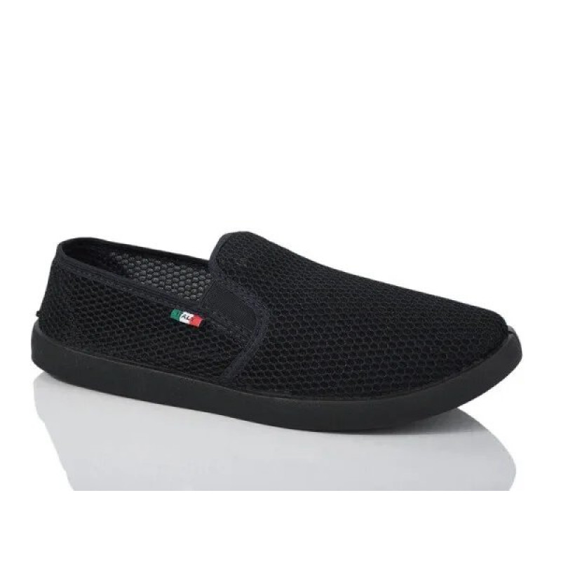 Максимально легкие и удобные мужские мокасины-слипоны — это спасение для ваших ног в летнюю жару. Модель выполнена в лаконичном черном цвете, что делает её универсальной: она подходит как к шортам, так и к джинсам или летним брюкам. Стильный акцент добавляет декоративная бирка с флагом Италии сбоку. Верх обуви изготовлен из прочной сквозной сетки, которая обеспечивает свободную циркуляцию воздуха — ваши ноги будут "дышать" даже в самую жаркую погоду. Благодаря эластичным вставкам по бокам, мокасины легко обувать без помощи рук, и они надежно держатся на ноге, подстраиваясь под любой подъем. Гибкая подошва из ПВХ (или пены) делает каждый шаг мягким и комфортным, снимая нагрузку со стопы. Эта обувь настолько легкая, что почти не ощущается на ноге. Идеальный вариант для прогулок, вождения авто или отдыха. Характеристики: Материал верха: Текстильная сетка (дышащая) Подошва: ПВХ (гибкая) Застежка: Без застежки (слипоны на резинках) Цвет: Черный Сезон: Лето Стиль: Повседневный (Casual) Страна производитель: Украина / Китай