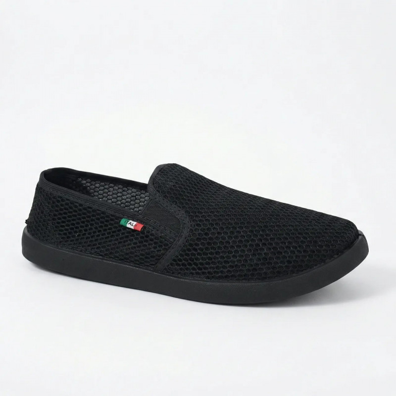 Максимально легкие и удобные мужские мокасины-слипоны — это спасение для ваших ног в летнюю жару. Модель выполнена в лаконичном черном цвете, что делает её универсальной: она подходит как к шортам, так и к джинсам или летним брюкам. Стильный акцент добавляет декоративная бирка с флагом Италии сбоку. Верх обуви изготовлен из прочной сквозной сетки, которая обеспечивает свободную циркуляцию воздуха — ваши ноги будут "дышать" даже в самую жаркую погоду. Благодаря эластичным вставкам по бокам, мокасины легко обувать без помощи рук, и они надежно держатся на ноге, подстраиваясь под любой подъем. Гибкая подошва из ПВХ (или пены) делает каждый шаг мягким и комфортным, снимая нагрузку со стопы. Эта обувь настолько легкая, что почти не ощущается на ноге. Идеальный вариант для прогулок, вождения авто или отдыха. Характеристики: Материал верха: Текстильная сетка (дышащая) Подошва: ПВХ (гибкая) Застежка: Без застежки (слипоны на резинках) Цвет: Черный Сезон: Лето Стиль: Повседневный (Casual) Страна производитель: Украина / Китай