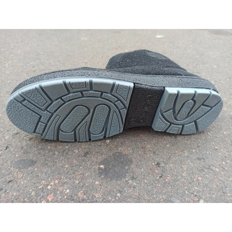 Оригинальные бурки от фабрики Dago Style. Плотный войлок, густой мех, удобная молния спереди. Усиленный носок и пятка. Надежная подошва Dago. Полное описание: Мужские зимние бурки от проверенной украинской фабрики Dago Style — это эталон теплой и практичной обуви по доступной цене. Эта модель разработана специально для наших зим, когда мороз сменяется слякотью. Верх выполнен из качественного обувного сукна (войлока), которое «дышит», но отлично держит тепло. Внутри — густой слой теплого эко-меха. Обувь посажена на фирменную подошву Dago, которая отличается повышенной износостойкостью. Почему выбирают Dago Style: Качественная подошва: Литая подошва с логотипом Dago не промерзает, не трескается на морозе и имеет хорошее сцепление с поверхностью. Удобство обувания: Центральная застежка-молния позволяет легко обуть бурки даже на высокий подъем. Защита от износа: Дополнительные накладки из эко-кожи на носке и пятке защищают войлок от намокания и протирания. Характеристики: Производитель: Dago Style (Украина, Львов) Материал верха: Войлок (сукно) Утеплитель: Искусственный мех (густой) Застежка: Молния спереди Подошва: ПВХ (бренд Dago) Цвет: Черный Сезон: Зима