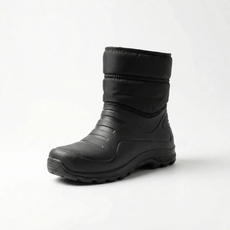 Зимние мужские ботинки серии "Olimp Thermo Shoes" — это надежная защита ваших ног от холода и влаги. Модель сочетает в себе легкость галош из пены и комфорт утепленных дутиков. Благодаря широкому размерному ряду (41-46), они подойдут как подросткам, так и взрослым мужчинам. Нижняя часть сапога отлита из материала ЭВА, который полностью водонепроницаем и морозоустойчив. Этот материал отлично амортизирует и не пропускает холод от земли. Верхняя часть изготовлена из плотного текстиля, защищающего от ветра. Внутри обувь утеплена искусственным мехом, что позволяет сохранять тепло даже при низких температурах. Удобная широкая застежка на липучке с логотипом "OLIMP" позволяет быстро обуваться и регулировать плотность прилегания голенища. Это особенно удобно для людей с высоким подъемом ноги. Рельефная подошва обеспечивает устойчивость на снегу и скользкой дороге. Характеристики: Производитель: Olimp Материал низа: Пена ЭВА (цельнолитая) Материал верха: Водоотталкивающий текстиль Утеплитель: Искусственный мех Застежка: Липучка с логотипом Размеры: 41-46 Цвет: Черный Сезон: Зима / Поздняя осень