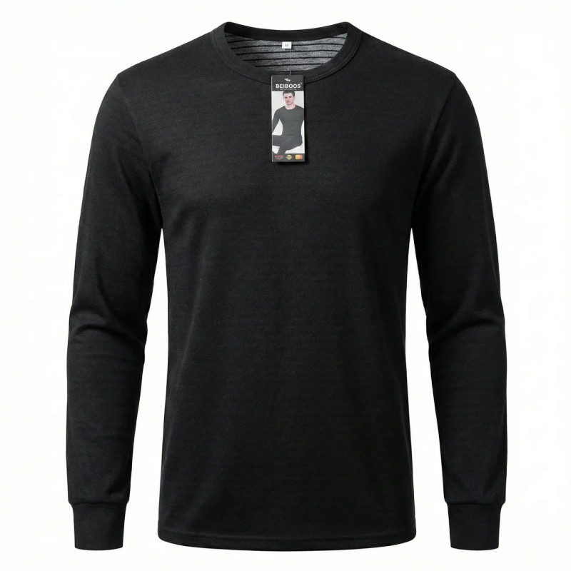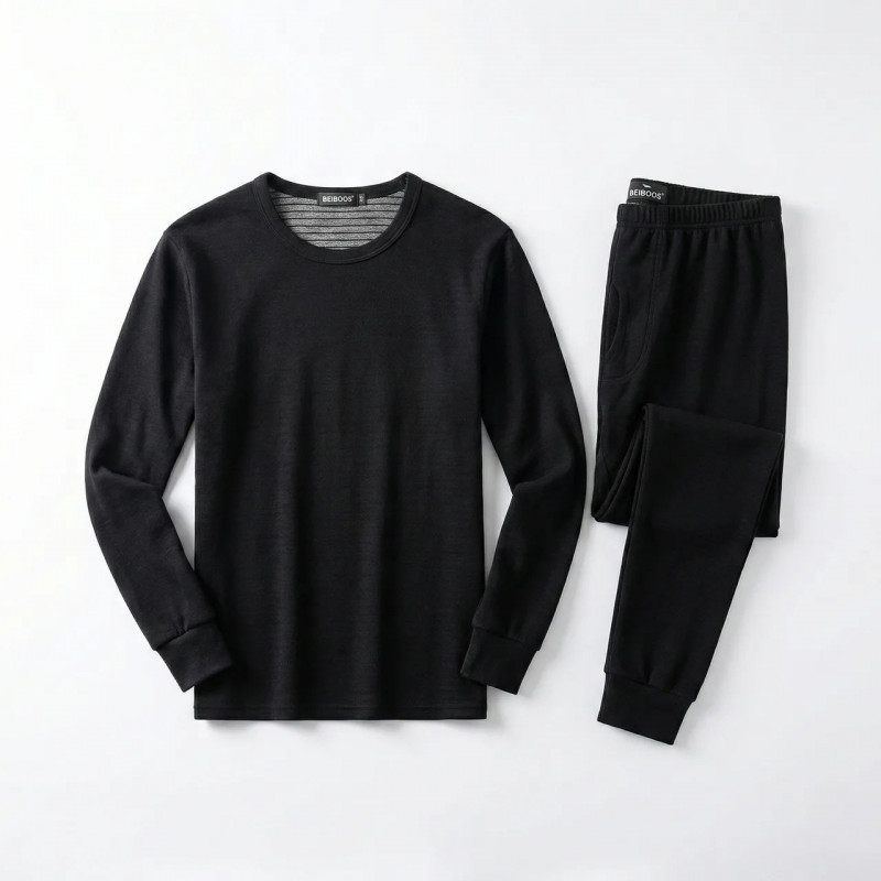 Мужское термобелье BEIBOOS (Комплект: Кофта + Штаны). Зимнее нательное белье на манжетах, Черное