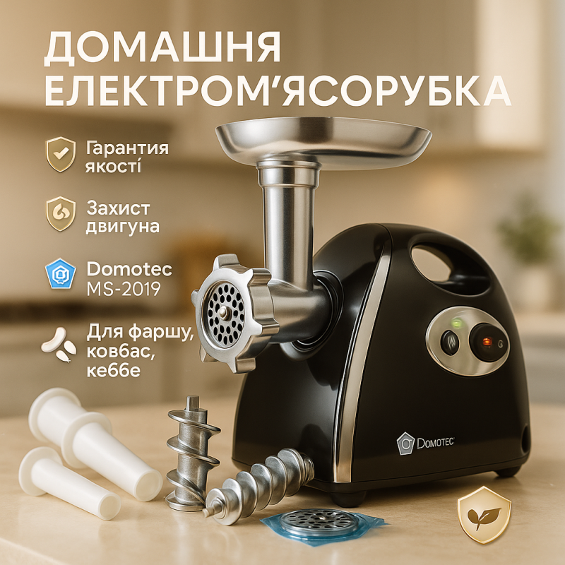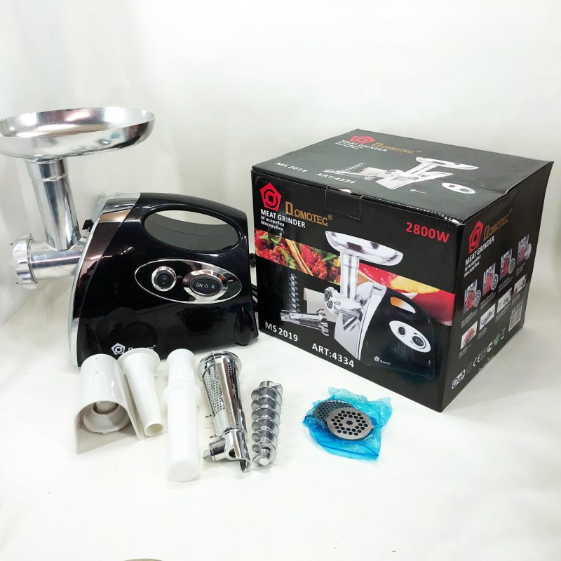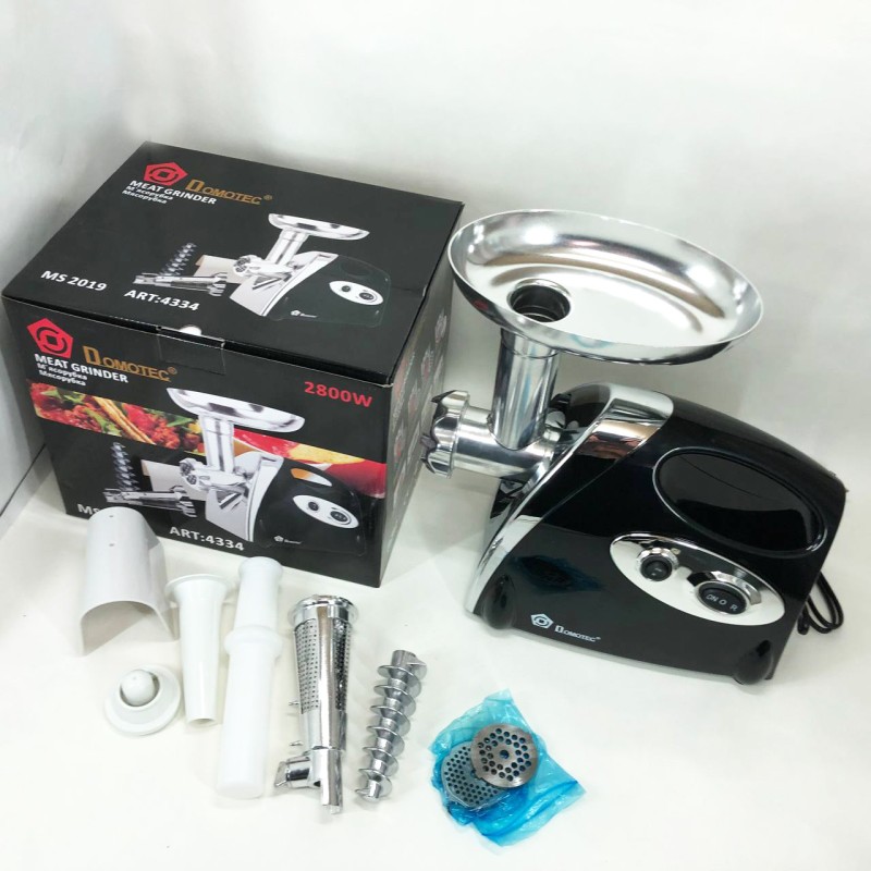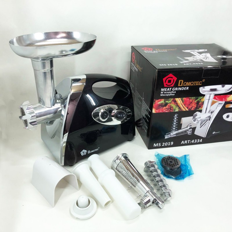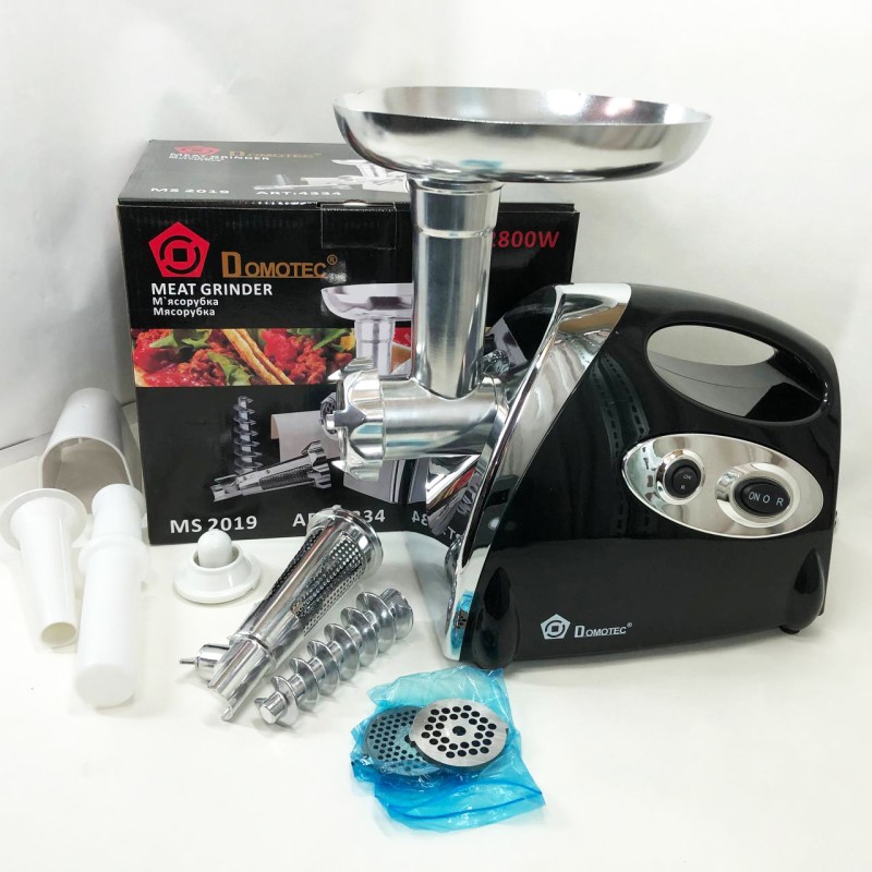 Электрическая мясорубка Domotec MS 2019 ― это необходимая вещь на кухне каждой хозяйки. При помощи данной мясорубки Вы сможете быстро приготовить нежнейший фарш для любых блюд, а так эе сок из овощей и фруктов.