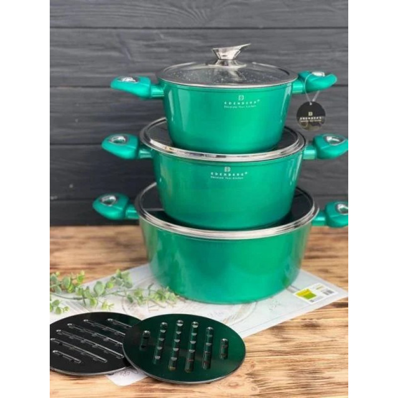Набір каструль Edenberg EB-7427 8 предметів з мармуровим покриттям антипригарним Зелений